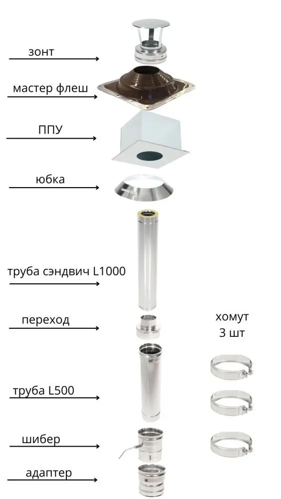 Комплект дымохода 430-0.8 D115 для печей состоит: