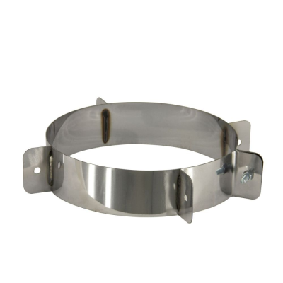 Хомут-растяжка является обязательным и необходимым элементом любой подобной системы если нет возможности использовать другие виды крепёжных элементов.  Каждый дымоход должен иметь строго определенную высоту, влияющую на тягу, а значит и качество процесса. Простой хомут под растяжку позволяет создавать дымоходыпрактически любой стандартной высоты. Его монтаж позволяет надежно зафиксировать трубу при помощи тросов, проволоки и прочего подобного. Укрепление трубы дымохода особенно актуально для тех случаев, когда он устанавливается в местности с интенсивными ветрами, а так же на большом удалении от стен или крыш за которые можно было бы крепить дымоходы используя, например, телескопический стеновой кронштейн.