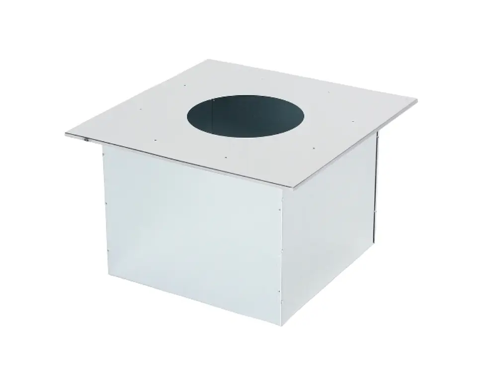 Проход перекрытия универсальный для негорючих перекрытий (ППУ-Рнг) - декоративный элемент для тепловых установок с невысокой температурой отходящих газов. По конструктиву является разборной конструкцией. Проход перекрытия не защищает перекрытие от перегрева! Монтаж элемента должен осуществлятся строго в соответствии с нормами СНИП 41.01.2003. Для защиты перекрытия от перегрева необходимо использовать "Комплект теплоизоляционный для ППУ-Р", который предназначен для предоствращения тепопередачи на перекрытие и на короб изделия по всему перемитру. При монтаже пространство внутри короба может быть заполнено негорючей теплоизоляцией.