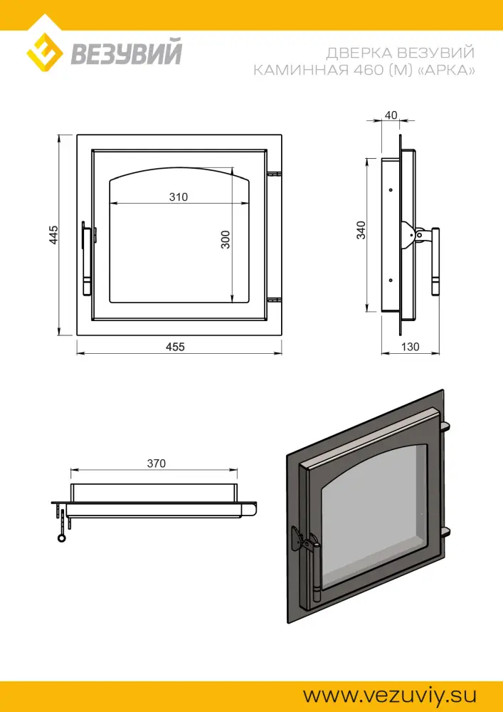 —Дверка ВЕЗУВИЙ каминная 460 (М) "Арка" Антрацит