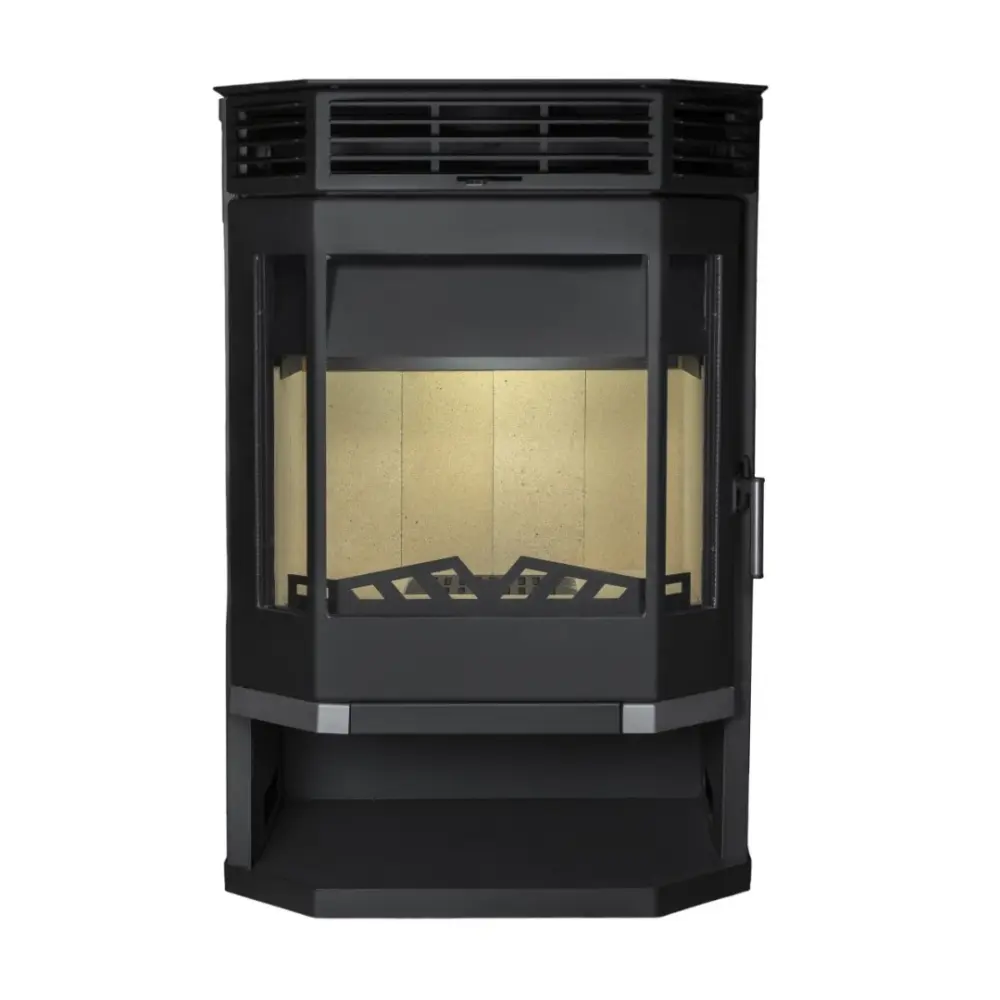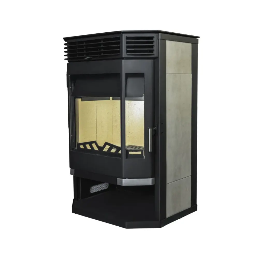 Корпус печи-камина Мета Ангара 12 изготовлен из жаропрочного металла и покрыт жаростойкой краской черного цвета. По бокам печь отделана керамической плиткой. Благодаря конвекционным в верхней части, в процессе работы печь быстро нагревается и начинает отдавать тепло помещению.