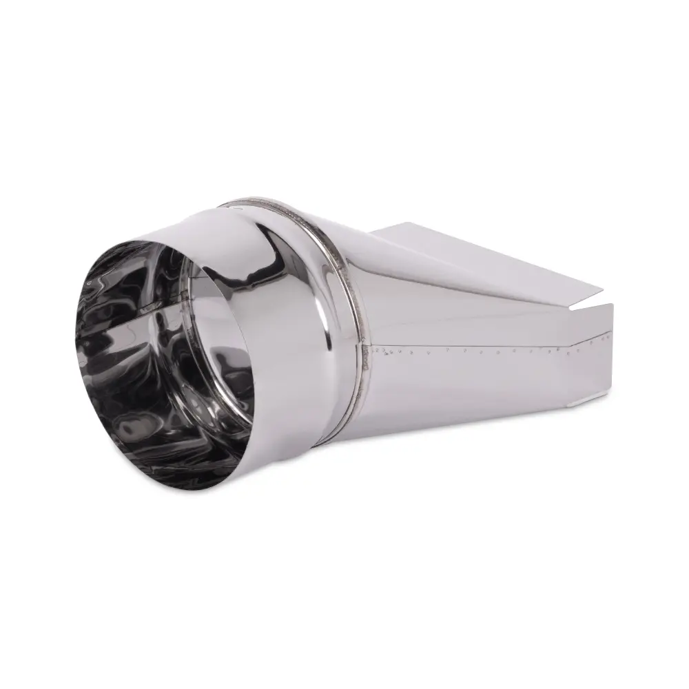 Дополнительный элементы для вентиляции «КуБасту» — переход с прямоугольника на круг. Соединяет прямоугольную трубу «КуБасту» с круглыми трубами диаметром 115 мм.